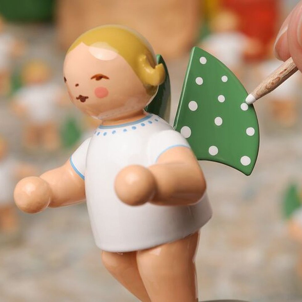 Elf weiße Punkte sind das Markenzeichen, das sie unverwechselbar macht: die Elfpunkte-Engel. Mit einem so genannten Tupfholz werden sie auf den grünen Flügelgrund getupft. Auf die Frage, warum gerade elf an der Zahl, pflegte Grete Wendt stets mit einem Lächeln zu antworten: „Es hat sich halt so ergeben.“